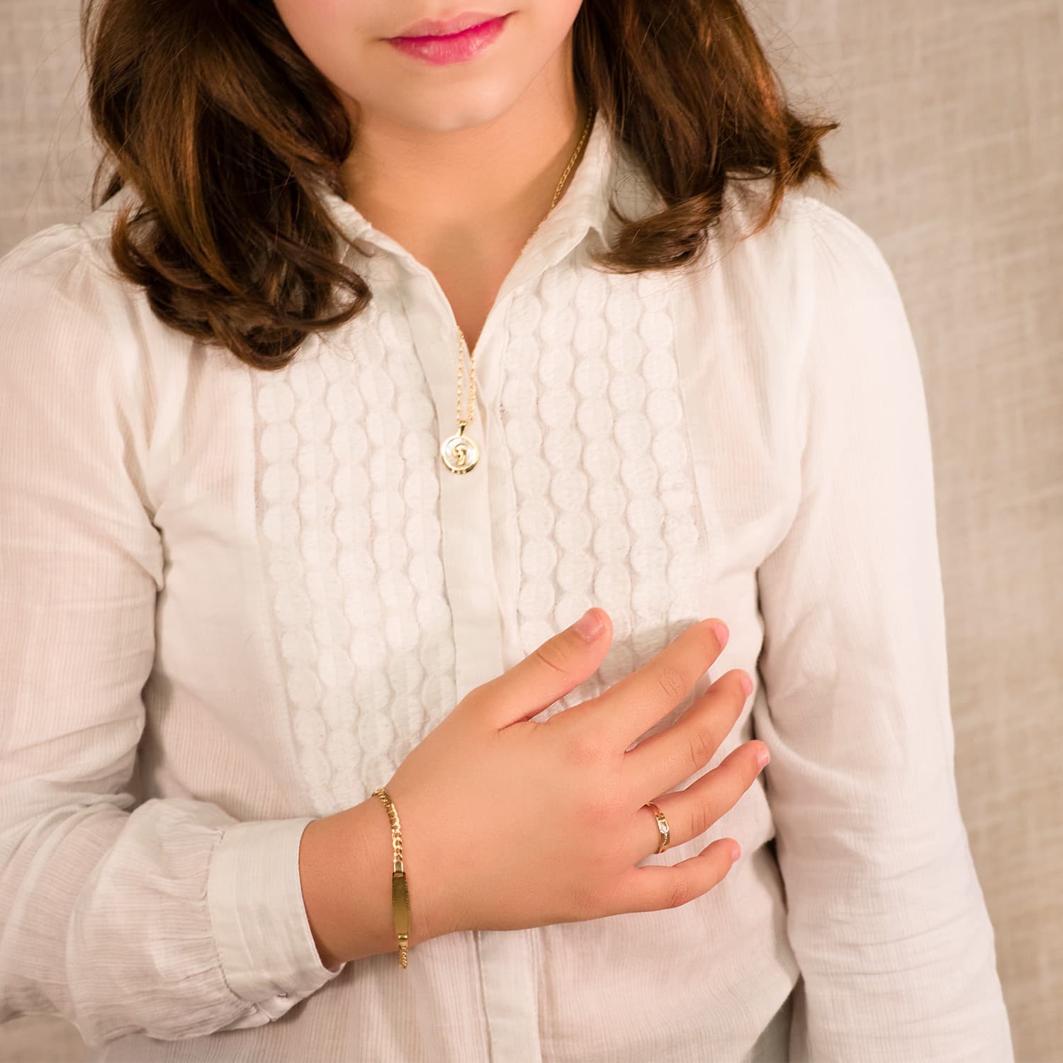 18K MEDALLA ORO AMARILLO VIRGEN NIÑA CON NACAR Y CIRCONITA 14 MM