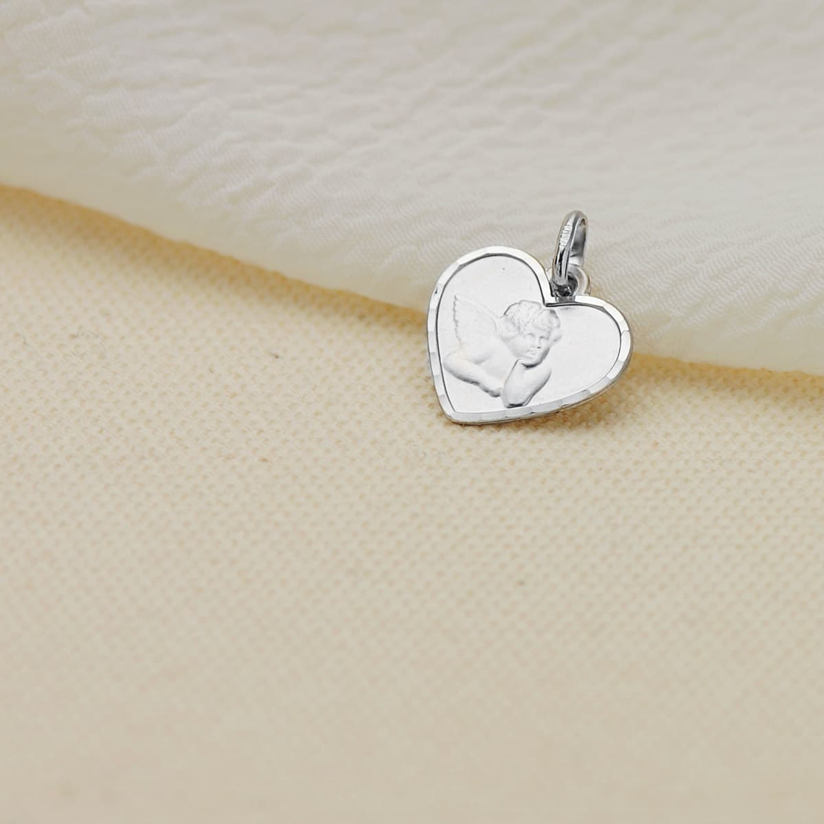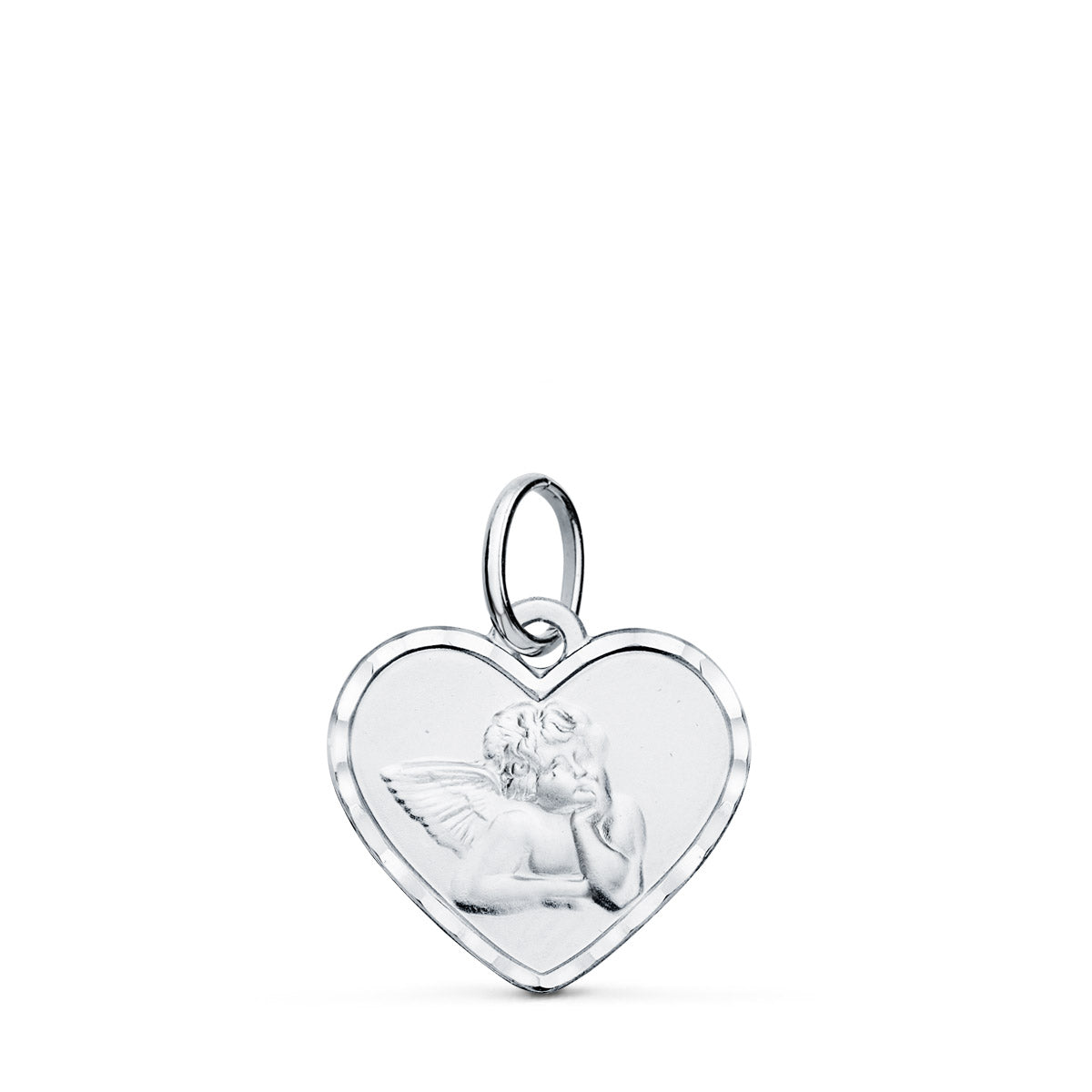 9K MEDALLA ORO AMARILLO ORO BLANCO ANGELITO BURLON CORAZON BORDE TALLADO 14X12 MM