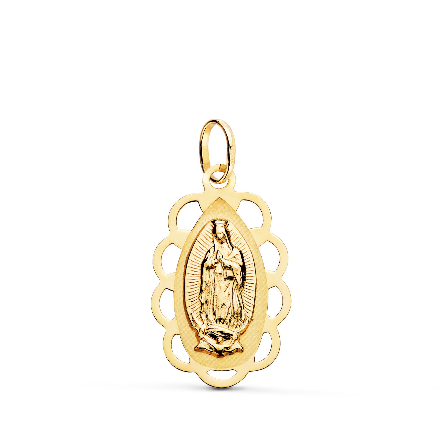 18K MEDALLA ORO AMARILLO VIRGEN DE GUADALUPE OVAL CALADA. MEDIDA: 26 X 16MM